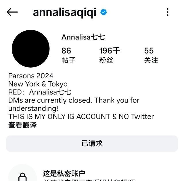不过疯宝刚去ins上搜索了她的账号发现,在林俊杰官宣之后,七七已经把自己的账号设置为了私密账号,看来已经提前有了准备,防止过来被舆论淹没,干脆直接私密,但也算是变相承认了这个官宣的就是她。